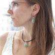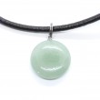 Кожаный чокер сделан из натуральной кожи, надёжно соединён с фурнитурой и украшен подвеской из нефрита. Специальная регулировочная цепочка позволяет менять длину чокера в пределах 1-5см.